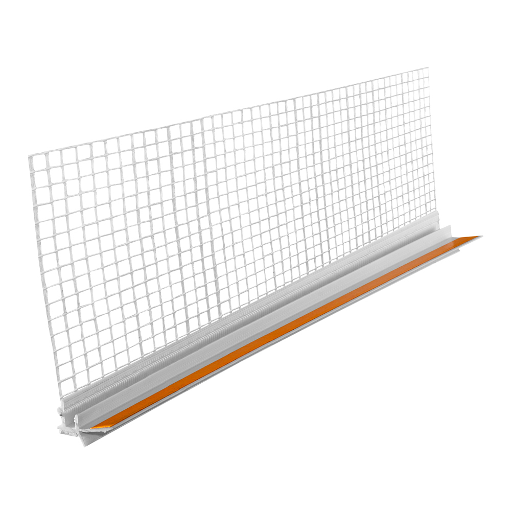Предназначен для работ при отделке внутренних и внешних откосов окон и дверей и служит для создания точного и качественного примыкания штукатурного слоя, для прочного фиксирования штукатурного раствора на откосах и предотвращения возникновения трещин в критических зонах примыкания. Слой резинового уплотнителя обеспечивает уплотнение деформационных швов. Изготавливается из ударопрочного и устойчивого к щелочи ПВХ. Сетка зафиксирована на профиле с помощью ультразвука, что исключает возможность ее отрыва.