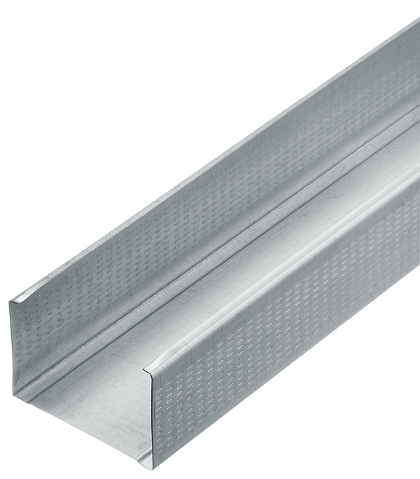 Предназначен для использования в качестве вертикального элемента каркасов, предназначенных для перегородок и обшивок стен. Монтируется с профилем направляющим 75х40.