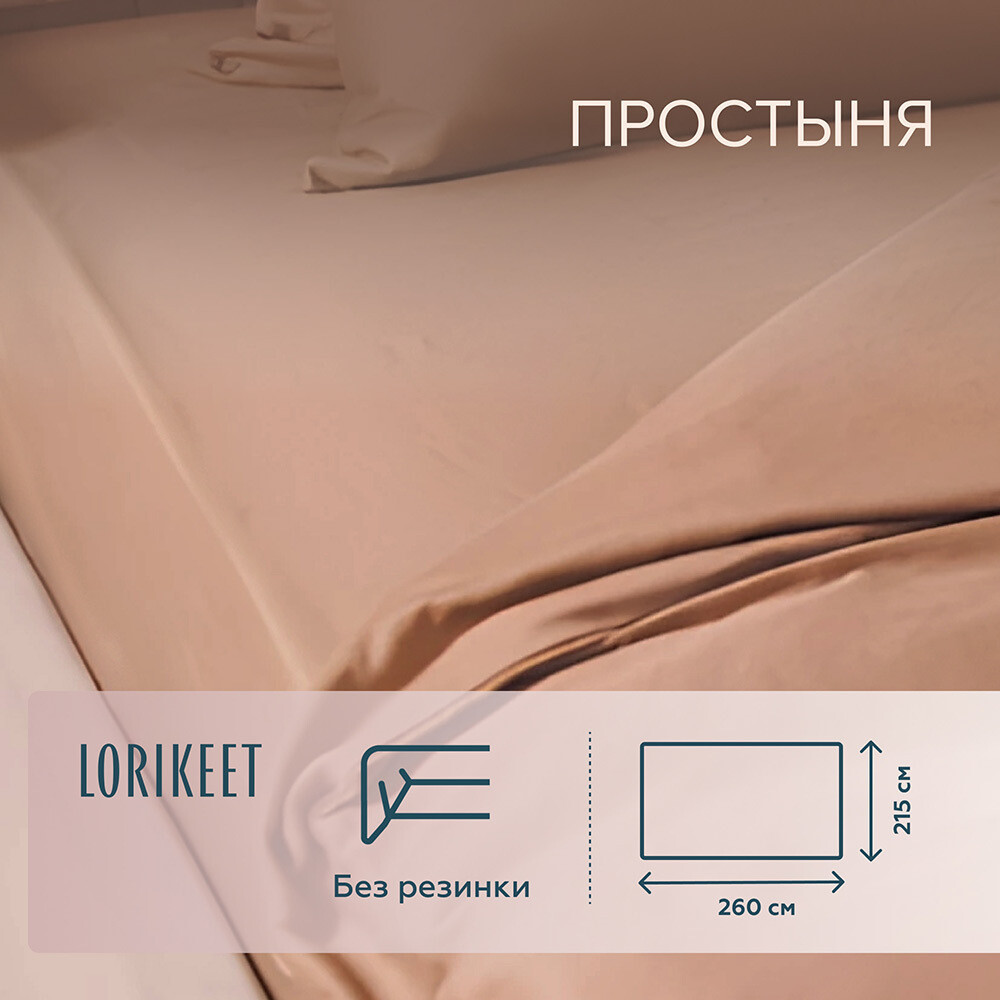Простыня 215х260 см сатин латте Lorikeet Solo