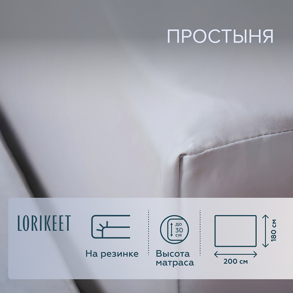 Простыня на резинке 180х200х30 см сатин серая Lorikeet Solo