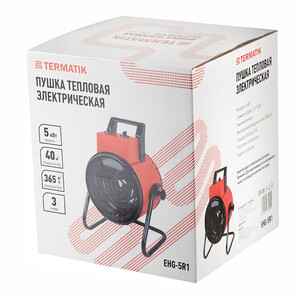 Тепловая электрическая пушка Termatik EHG-5R1 предназначена для быстрого обогрева и просушки производственных, торговых, складских и других помещений площадью до 40 м².