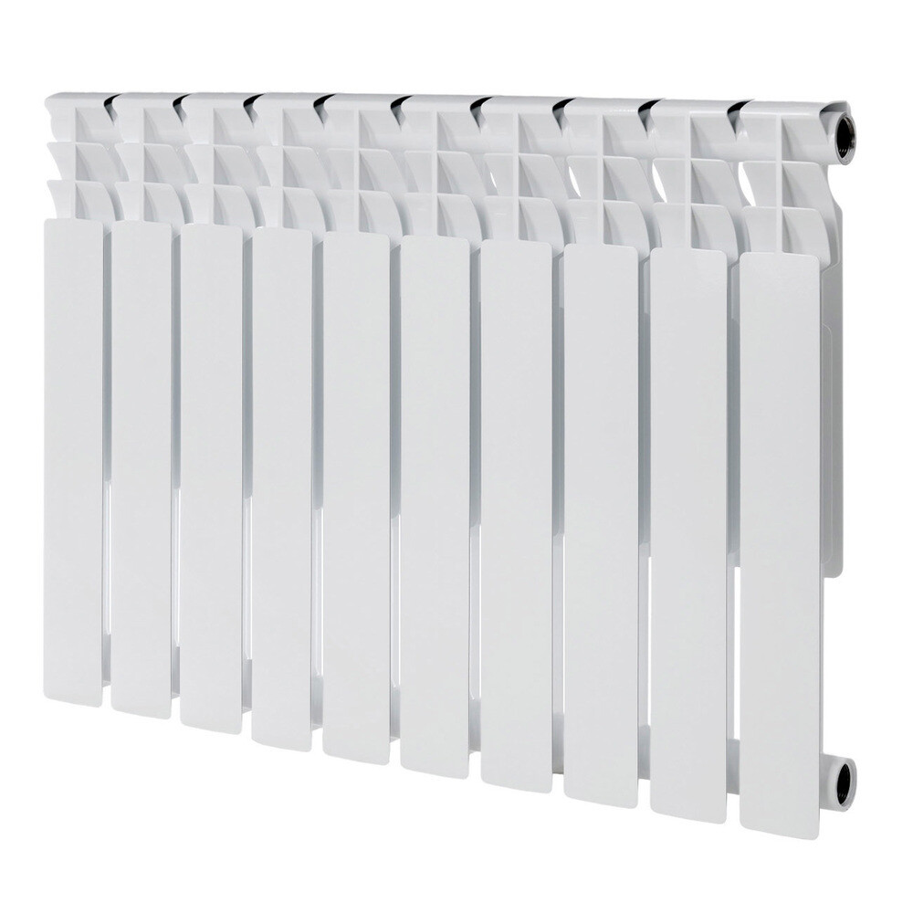 Главная / Каталог / Инженерные системы / Отопление / Радиаторы отопления и комплектующие / Радиаторы биметаллические / Радиатор биметаллический КМ 500 мм 10 секций 1″ боковое подключение белый
