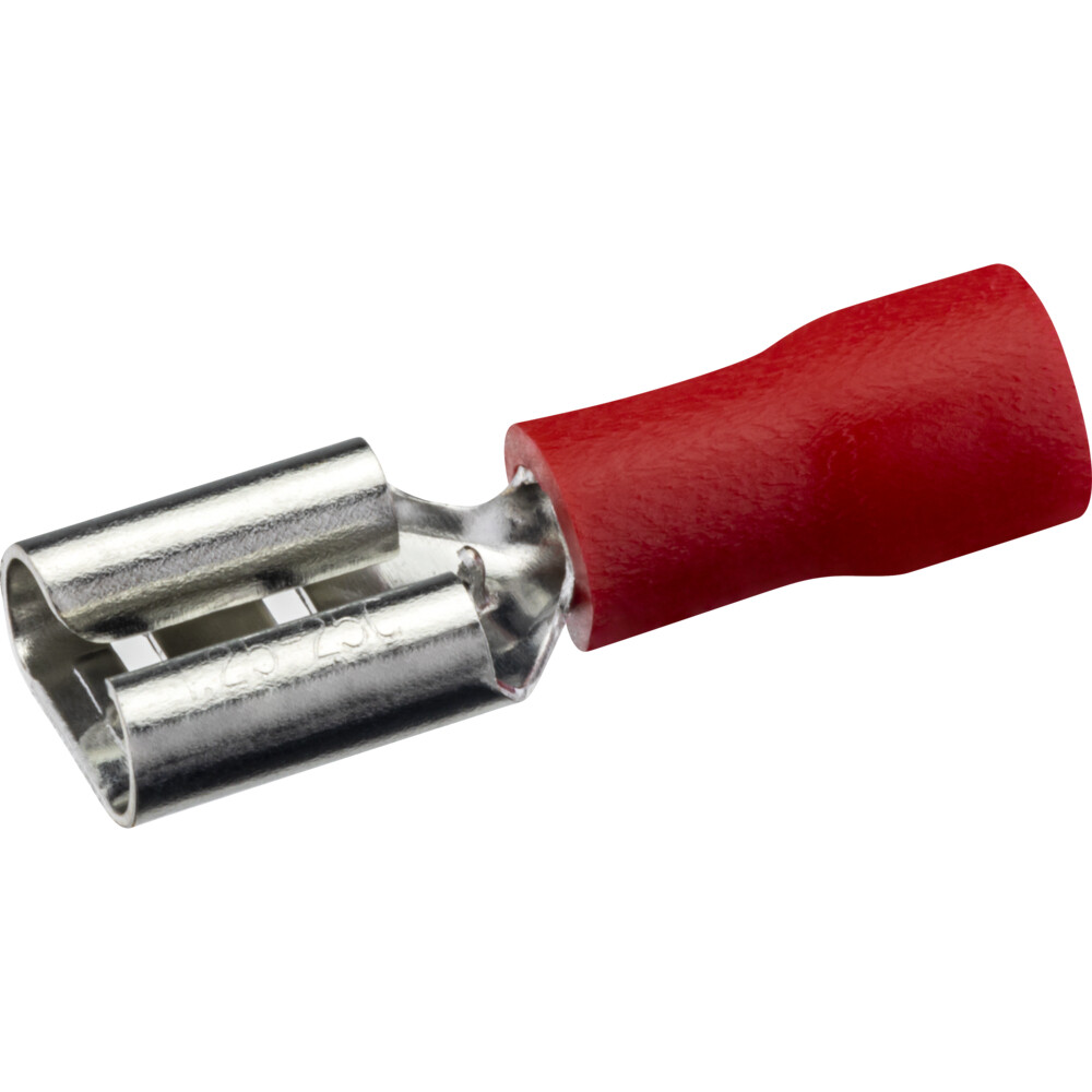 Плоский изолированный наконечник РпИм 1,5-6,3 (мама) предназначен для монтажа быстроразъемных соединений медных проводов сечением от 0,5 до 1,5 мм2.