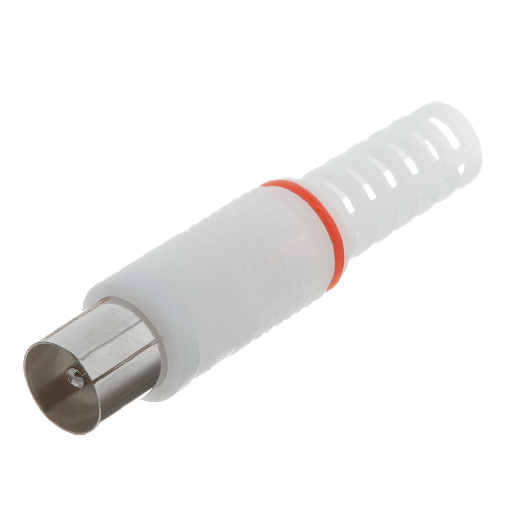 Предназначен для подключения эфирного, спутникового и кабельного телевидения с помощью радиочастотного кабеля. Такой разъем монтируется на телевизионный кабель и передает идущий по кабелю сигнал на ТВ устройства. Установка провода в разъеме производится с помощью винтового зажима, что значительно сэкономит время на монтаж. Корпус разъема и контакты изготовлены из никелированного металла, а колпачок из белой и прочной пластмассы. Колпачок имеет амортизатор кабеля (в народе именуемый «хвостом»), который позволяет кабелю гнуться только с безопасным радиусом изгиба. Простой монтаж и надёжное соединение, обеспечат защиту от помех и внешних воздействий.