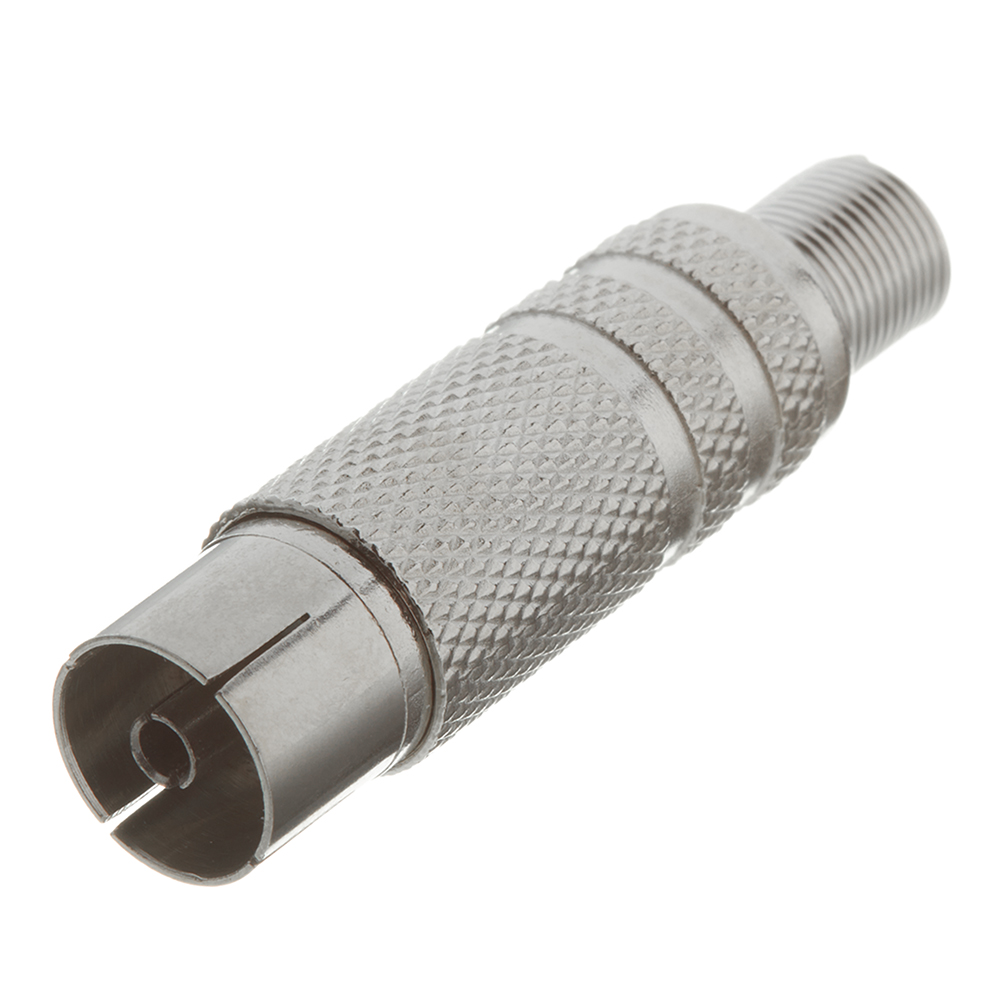Предназначен для подключения эфирного, спутникового и кабельного телевидения с помощью радиочастотного кабеля. Такой разъем монтируется на телевизионный кабель и передает идущий по кабелю сигнал на ТВ устройства. Установка провода в разъеме производится с помощью винтового зажима, что значительно сэкономит время на монтаж. Корпус разъема и контакты изготовлены из никелированного медного сплава, обеспечивающие надежный и долговечный контакт. Разъём гнездо оснащен специальным металлическим пружинным амортизатором кабеля (в народе именуемый «хвостом»), который позволяет кабелю гнуться только с безопасным радиусом изгиба. Профессиональный уровень надежности достигается благодаря применению качественных материалов и высокотехнологичного уровня исполнения.