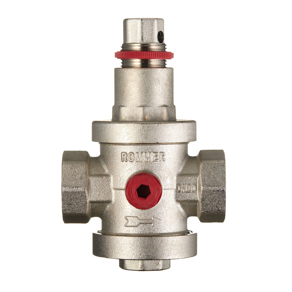 Редуктор давления Rommer с возможностью подключения манометра предназначен для снижения и стабилизации давления среды внутри распределительного трубопровода с учетом предварительного заданного значения.