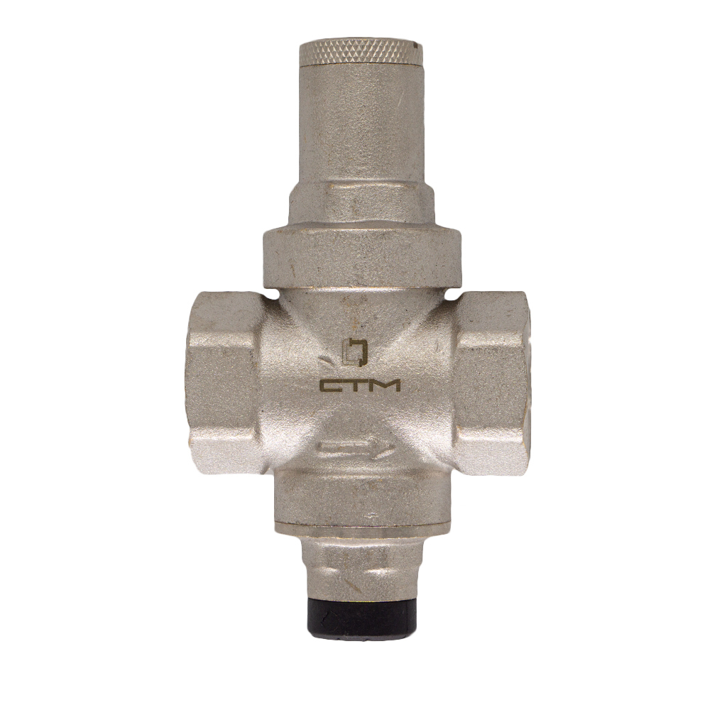 Регулятор давления (редуктор) 1/2″ СТМ Термо предназначен для автоматического поддержания постоянного давления на трубопроводах систем отопления и сетях горячего и холодного водоснабжения. Регулятор поддерживает давление после себя не превышающее настроечное, вне зависимости от скачков давления в сети. Диапазон регулировки давления от 1 до 6 Бар.Направление стрелки на корпусе должно совпадать с направлением потока. Редуктор поставляется в сборе. Срок службы — 15 лет.