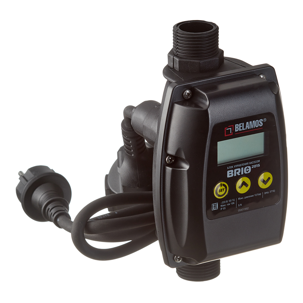 Блок управления контролирует работу насоса в автоматическом режиме в заданном диапазоне давления.