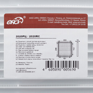 Решетка вентиляционная пластиковая приточно-вытяжная Era РЦ 200х200 мм с сеткой белая