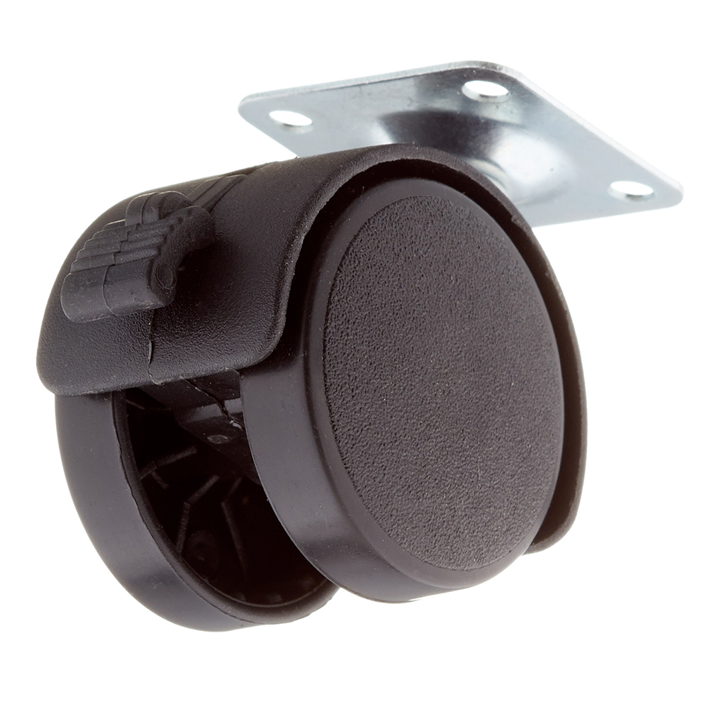 Ролик двойной на площадке со стопором d40 мм (черный/черный)