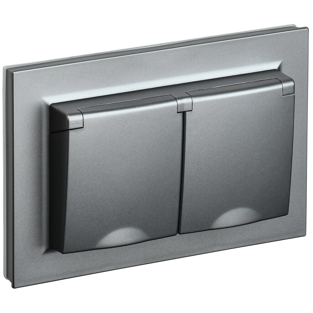 Розетка IEK Brite РСбш12-3-44-БрС встраиваемая сталь с крышкой (BR-R26-16-44-K46-F)