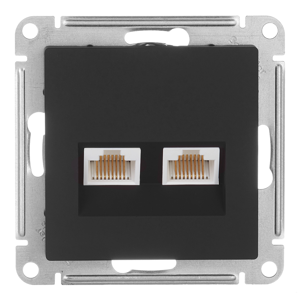 Розетка компьютерная Systeme Electric AtlasDesign встраиваемая карбон 2хRJ45 (ATN001085)