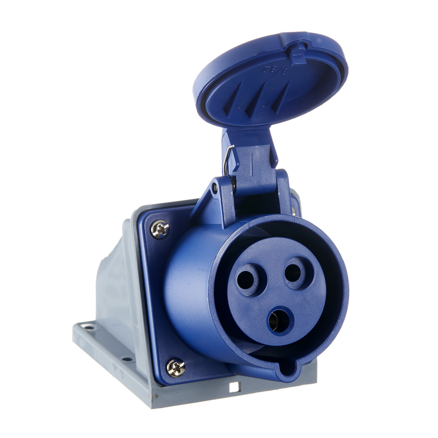 Розетка силовая угловая настенная Dekraft РС-103 с заземлением 2P+PE 1 фаза 32 А 220 В IP44 синяя (26191DEK)