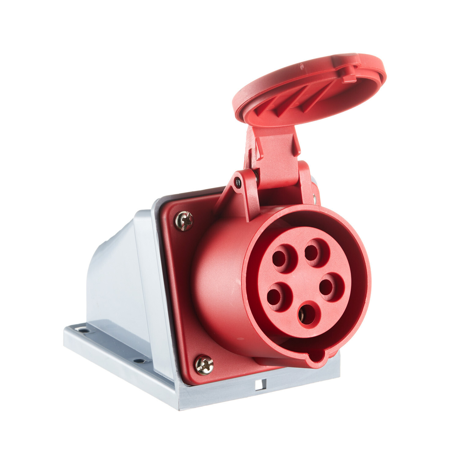 Розетка силовая угловая настенная Dekraft РС-103 с заземлением 3P+N+PE 3 фазы 16 А 380 В IP44 красная (26194DEK)