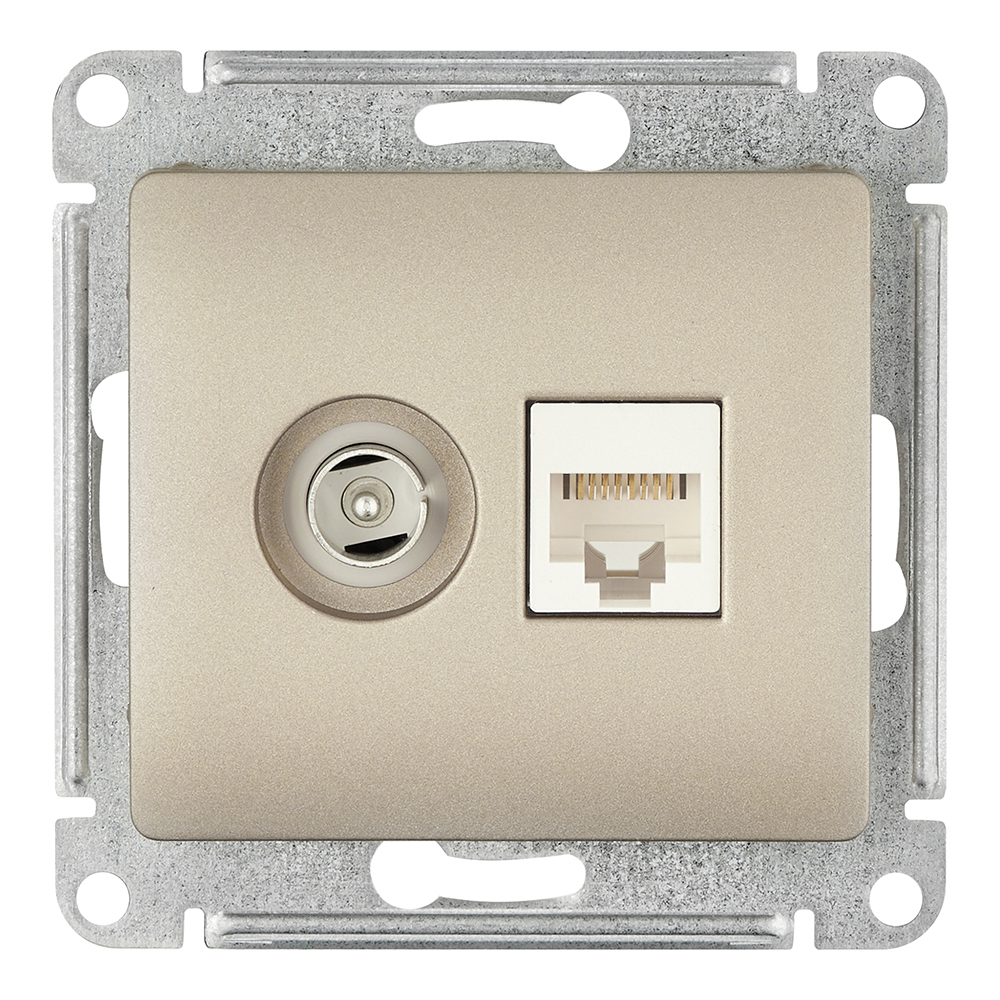 Розетка телевизионная/ компьютерная Systeme Electric Glossa встраиваемая титан TV/ RJ45 (GSL000489)