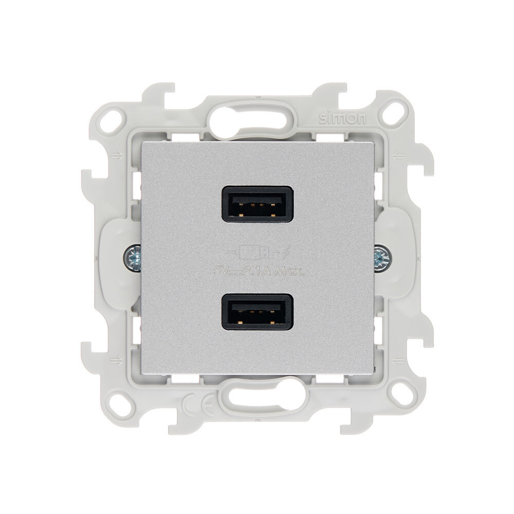 Розетка USB Simon 24 Harmonie встраиваемая алюминий 2хUSB-А (2411096-033)
