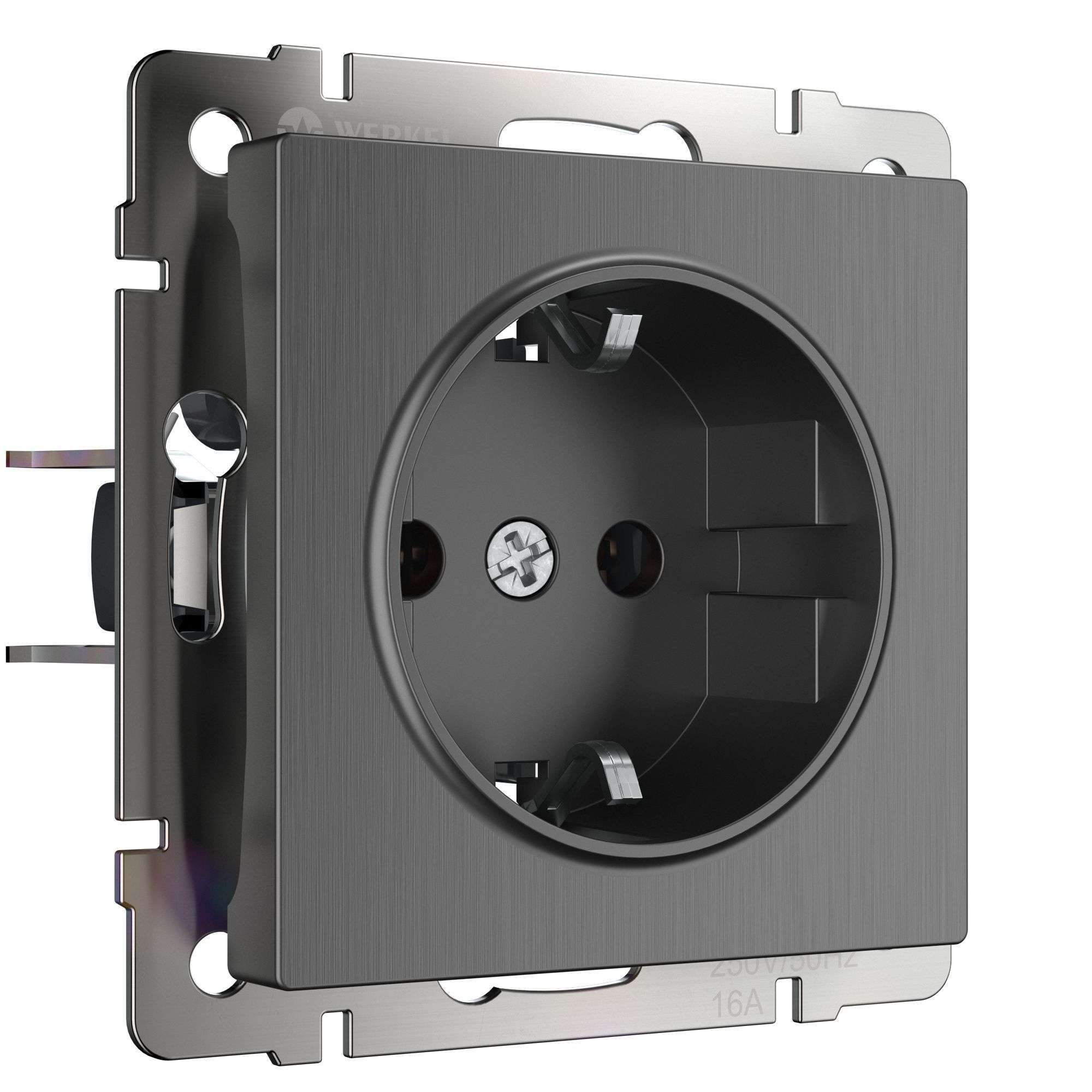 Розетка Werkel встраиваемая графит рифленый со шторками (a050750)
