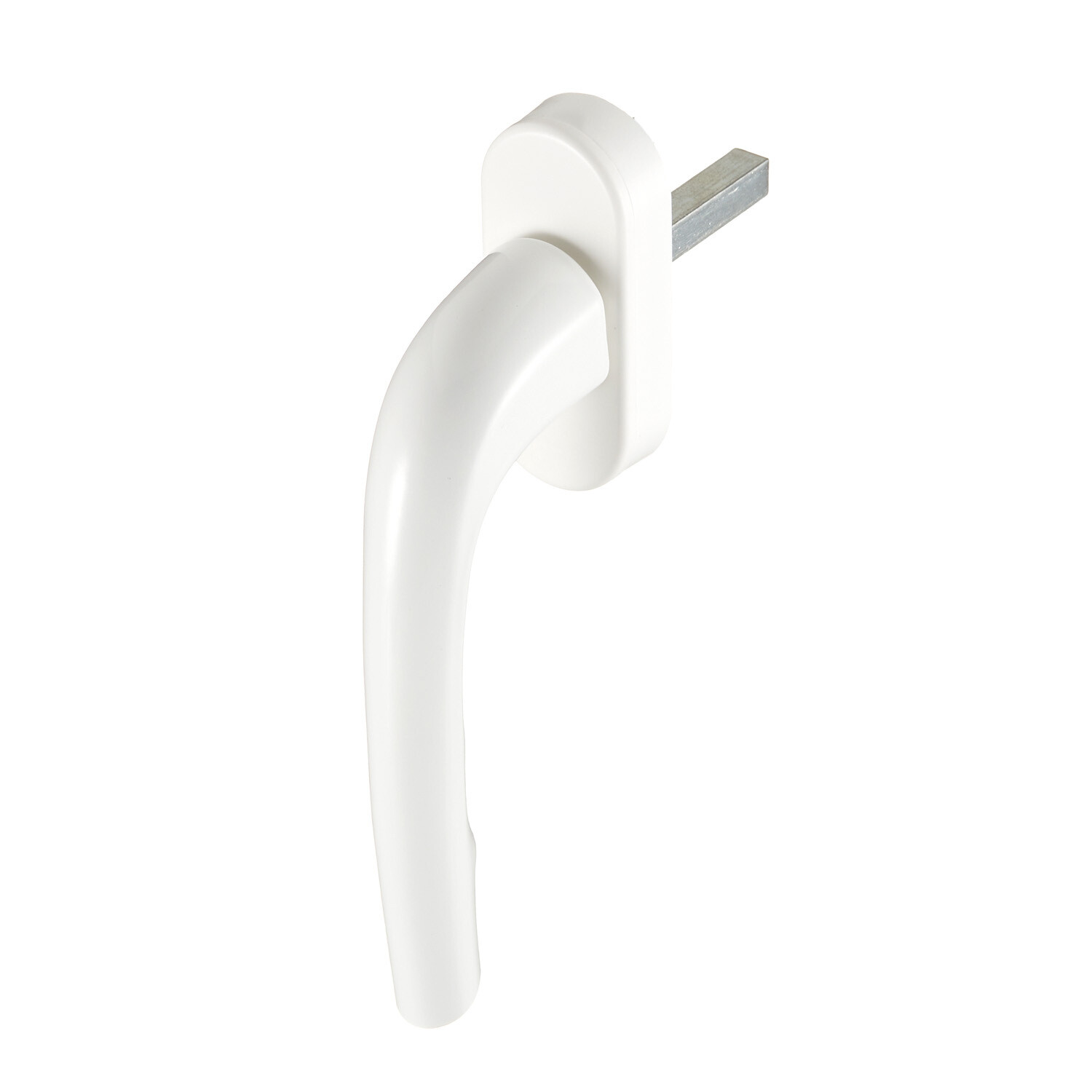 Предназначена для окон из дерева и ПВХ. Ручка оконная с блокиратором алюминиевая без ключа, белого цвета RAL 9016, полукруглой формы, штифт 35 мм, 45°, 2 винта 5х45.