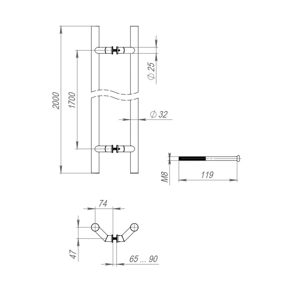 Ручки-скобы изготовлены из нержавейки INOX 304 и предназначены для установки на внутренние и наружные металлические, профильные, деревянные и стеклянные двери, на двери подъездов и технические двери с одной или с двух сторон.