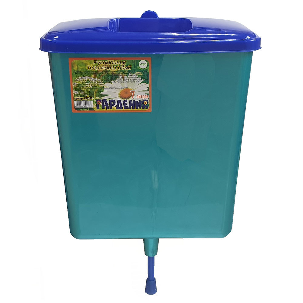 Пластмассовый рукомойник незаменим на даче, в огороде, на дачном участке. Укомплектован крышкой для защиты воды от попадания мусора. Изготовлен из первичного полипропилена с добавлением красителя. Объём — 7 л.