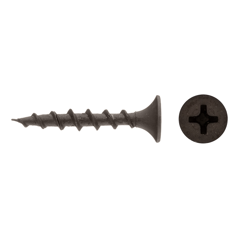 Саморезы имеют потайную головку с крестообразным шлицем PH2, острый наконечник и редкую резьбу. Производятся из углеродистой стали с последующим оксидированием для защиты от коррозии.