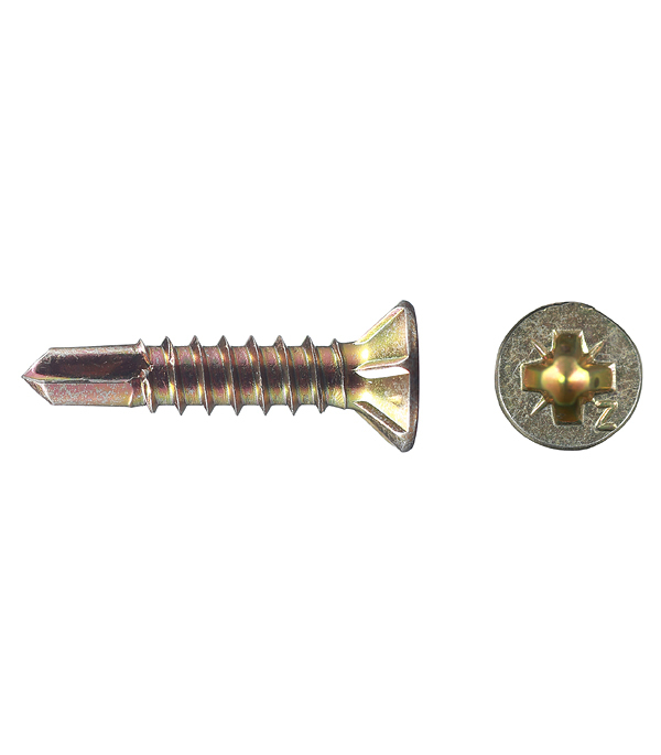 Потайная головка самореза имеет зенкующие и предохраняющие от раскручивания насечки, крестообразный шлиц PH2, резьбу с мелким шагом и наконечник в виде бура. Производятся из оцинкованной стали.