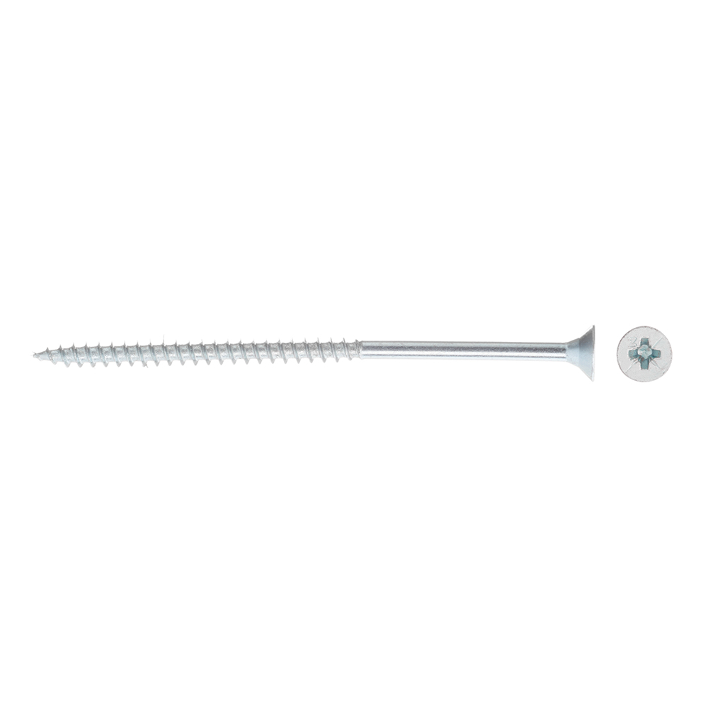 Саморезы имеют потайную головку с крестообразным шлицем PZ 2 и острый наконечник. Производятся из оцинкованной стали.