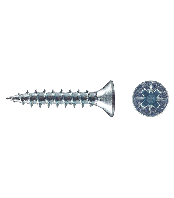 Саморезы имеют потайную головку с крестообразным шлицем PZ 2 и острый наконечник. Производятся из оцинкованной стали.
