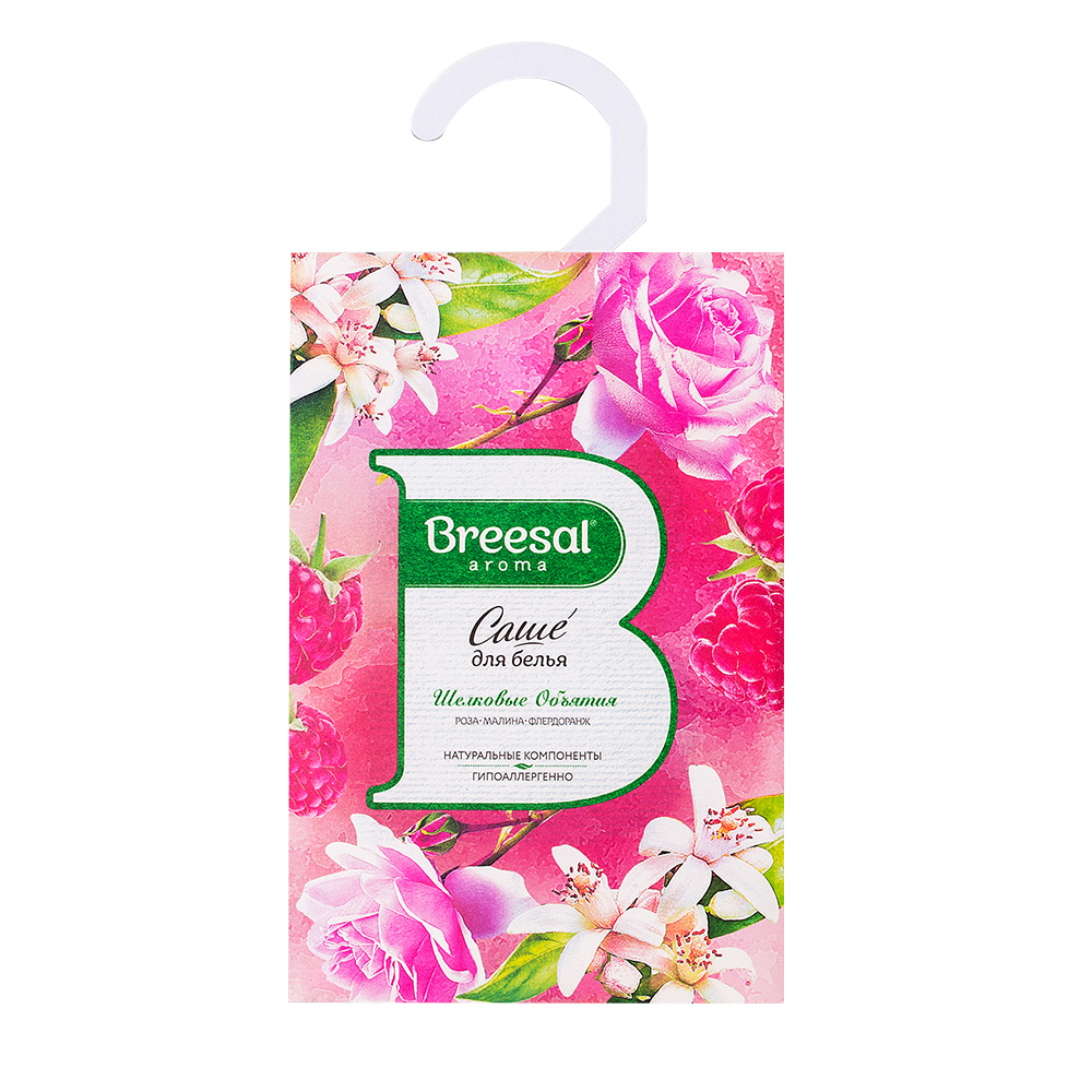 Ароматическое саше для белья Breesal — это компактный и деликатный способ придать гардеробной, шкафу или комоду легкий и ненавязчивый аромат. Просто разместите их на полке или штанге с помощью специального крючка и радуйте себя прекрасным настроением каждый раз, когда открываете шкаф, застилаете белье или надеваете любимую вещь. Специально для этого мы выбрали утонченные, но стойкие композиции от ведущих парфюмерных домов мира, которые будут радовать вас в течение целого месяца. Саше ароматическое для шкафа «Шелковые объятия» наполнит пространство чарующе женственным благоуханием лепестков розы, спелых ягод малины и сладкого флердоранжа.