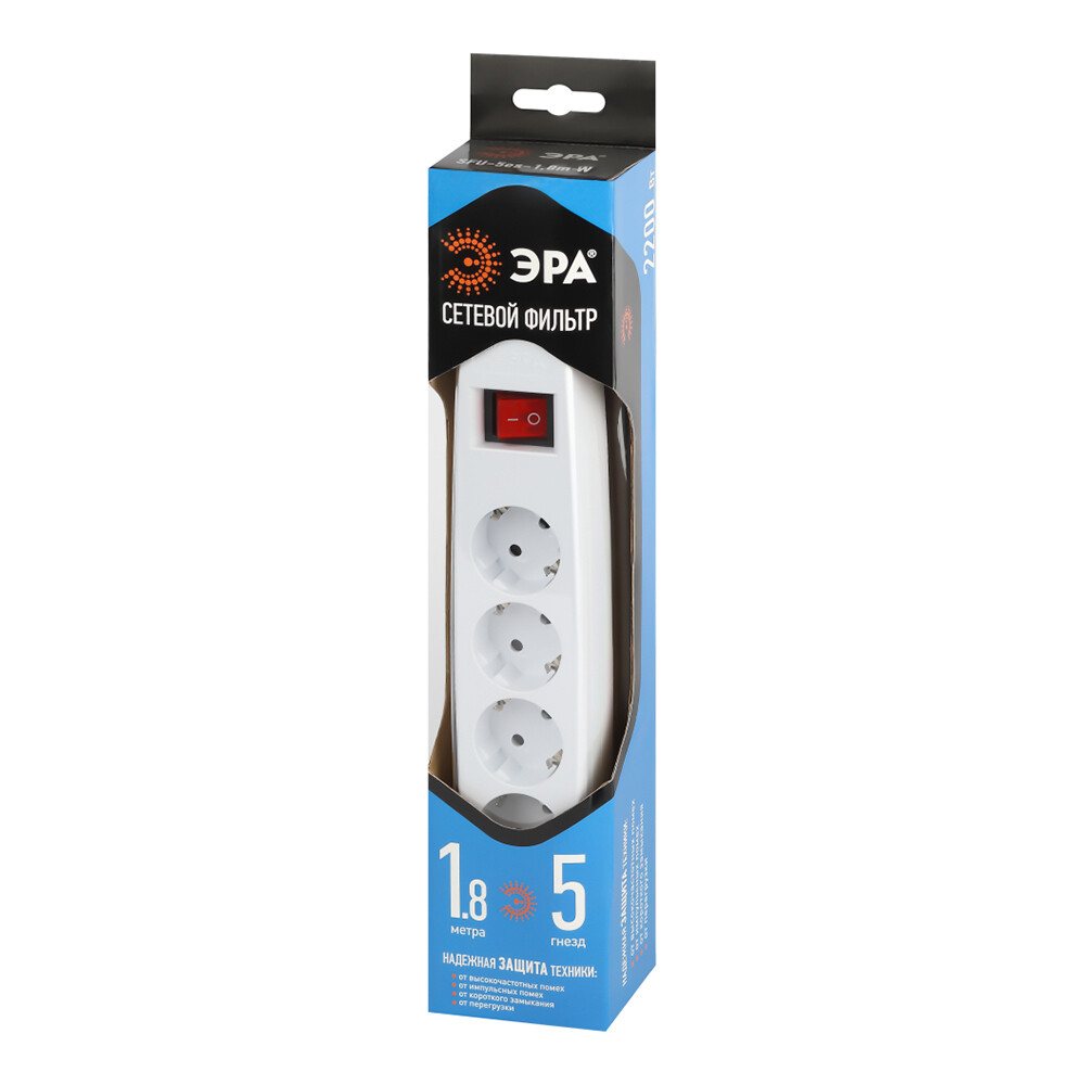 Сетевой фильтр Эра 5 розеток 1,8 м 10 А 2,2 кВт белый (Б0027828)