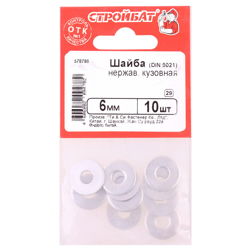 Шайба кузовная нержавеющая сталь 6×18 мм DIN 9021 (10 шт.)