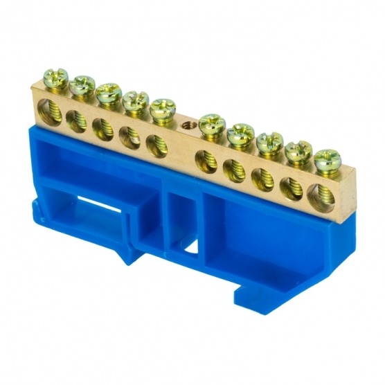 Шина нулевая на DIN-изоляторе EKF PROxima 6х9 мм 10 отверстий синяя (20 шт.) (sn0-63-10-d)