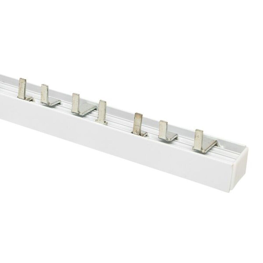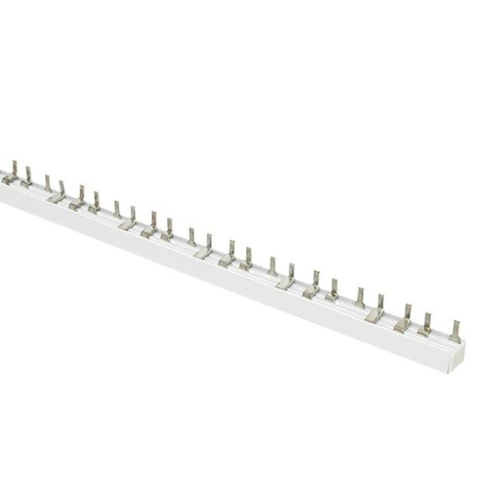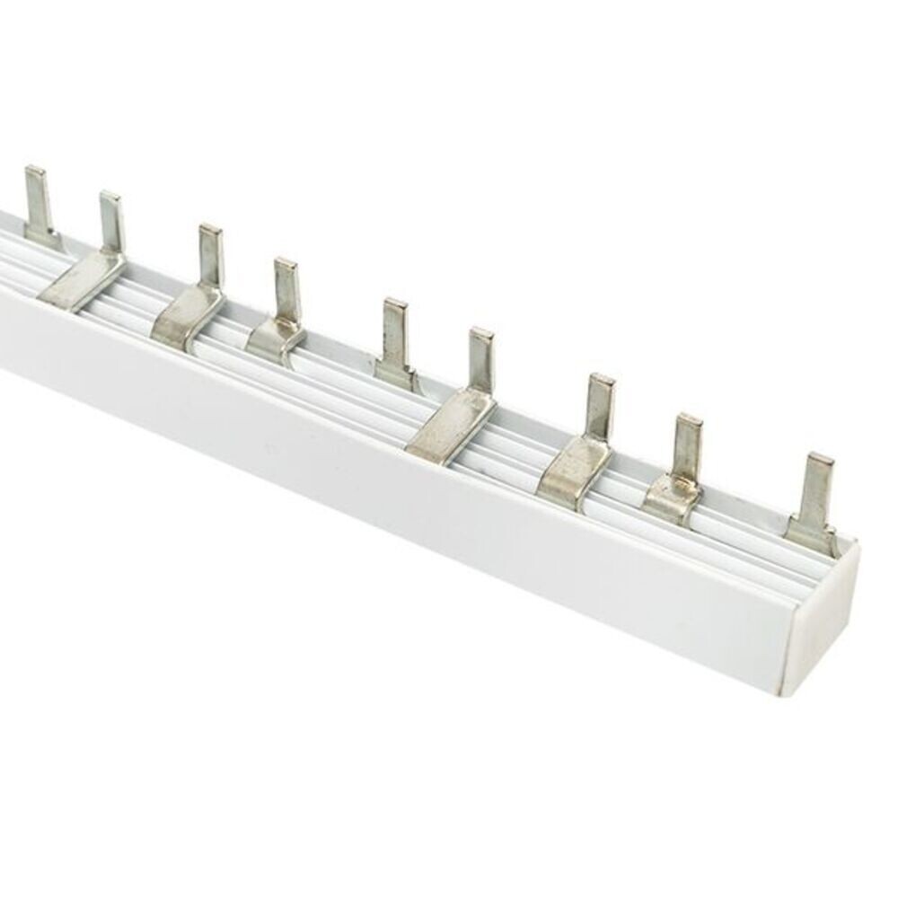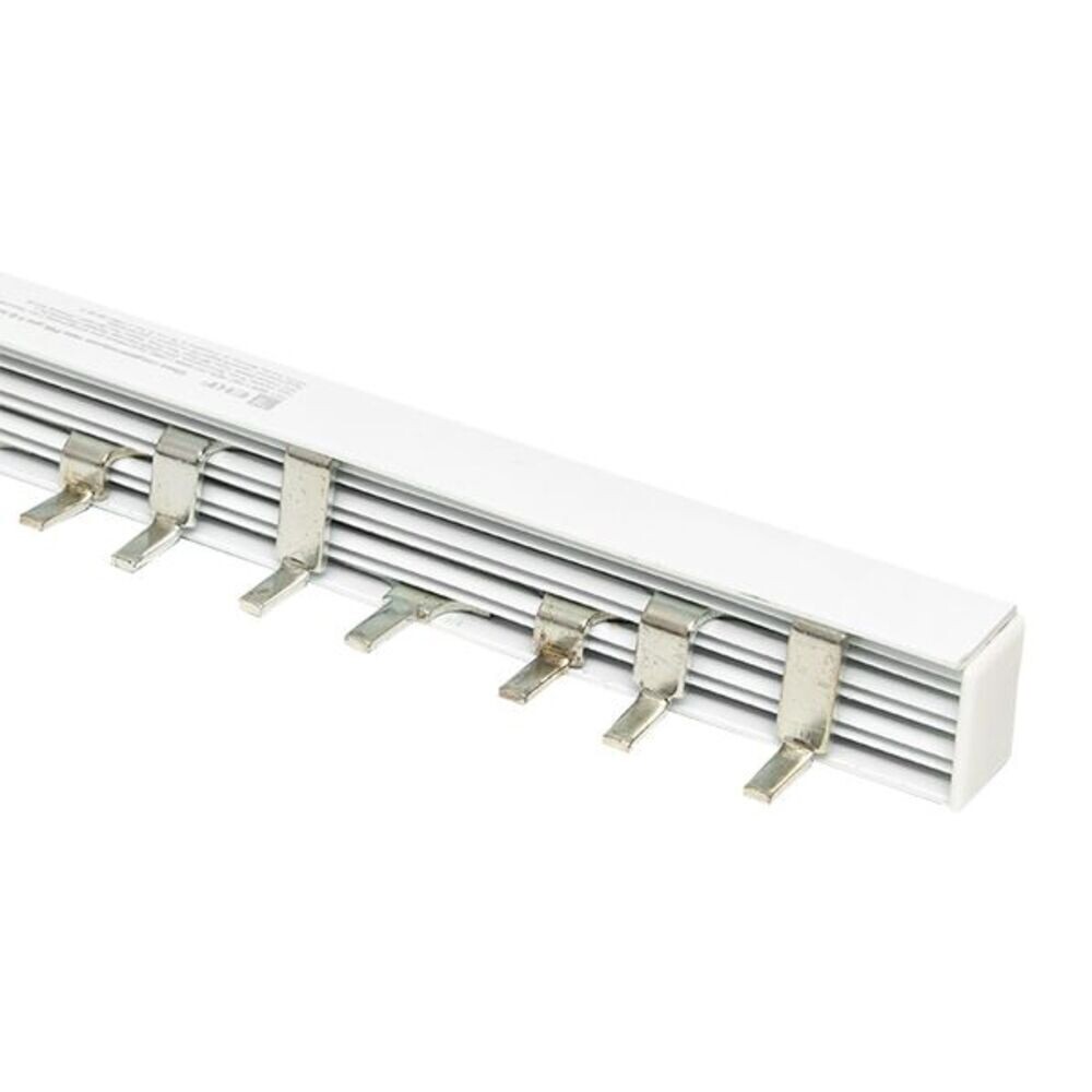 Шина соединительная представляет собой пластину, выполненную из луженой меди, закрепленную в корпусе из диэлектрического материала, не поддерживающего горение, и выпускается стандартной длиной 1 метр.