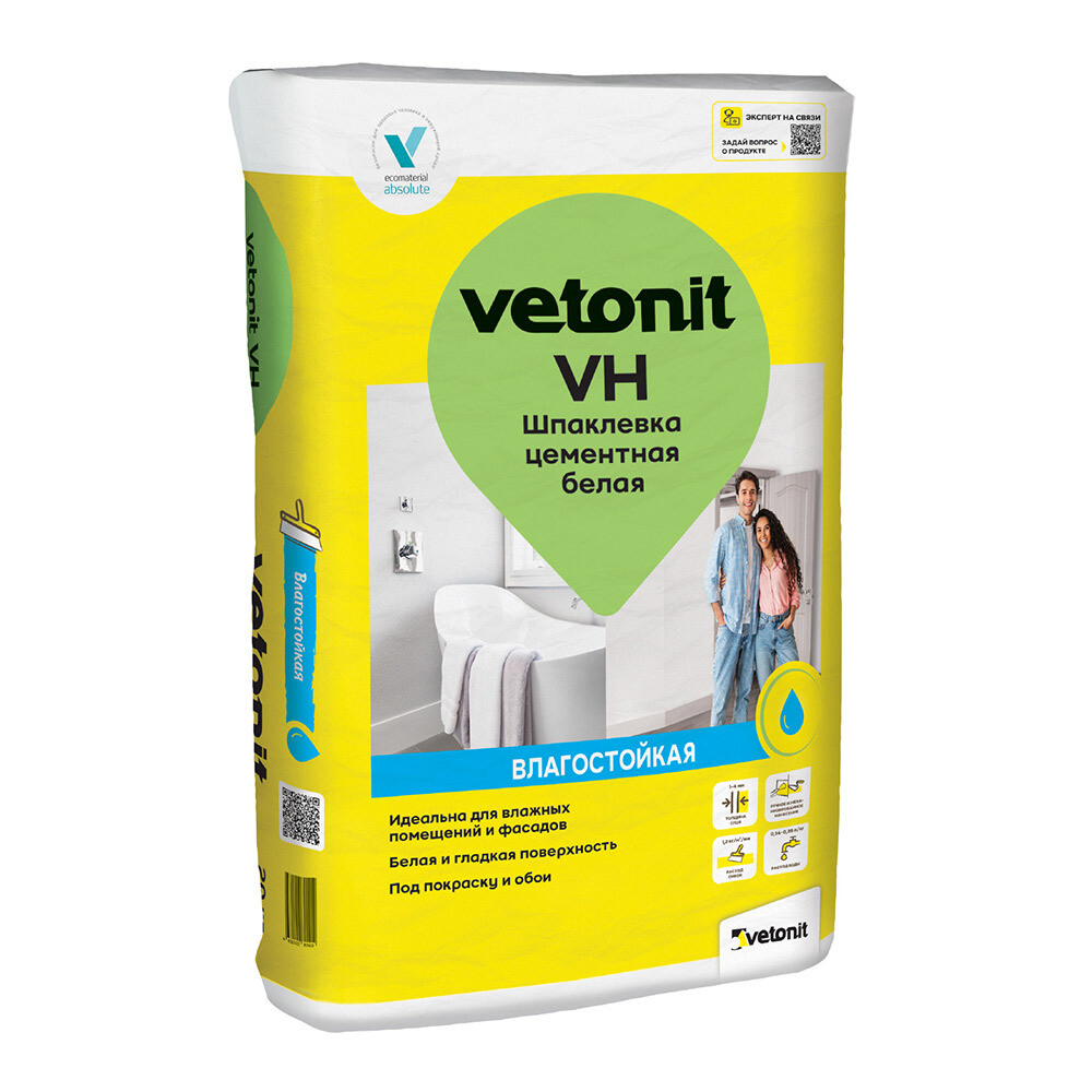 Шпаклевка цементная Weber.vetonit VH для влажных помещений белая 20 кг