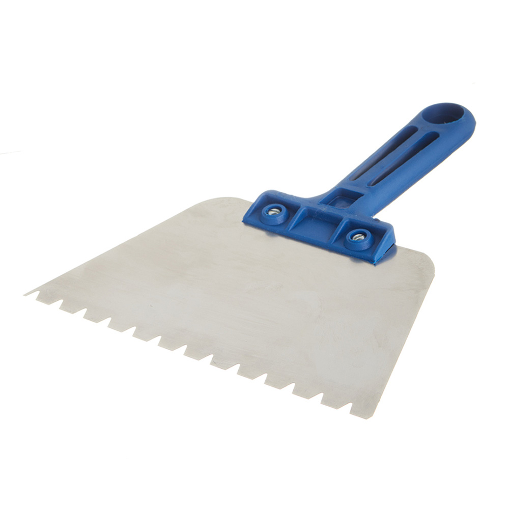 Предназначен для проведения работ по укладке паркета, ламината в качестве инструмента для нанесения клеевого раствора. Ширина зубца — 8 мм, высота зубца — 6 мм.