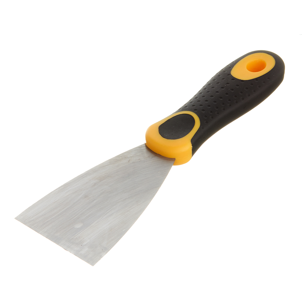 Шпатель из нержавеющей и лакированной стали, усиленный. Рукоятка изготовлена из двухкомпонентного материала.