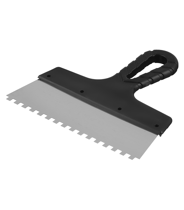 Предназначен для нанесения и распределения клеевых растворов и создания на их поверхности гребенчатой структуры при укладке керамической плитки, декоративного камня и др. Шпатель зубчатый служит для того, чтобы клеевая масса разравнивалась до одинаковой толщины слоя по всей площади материала без образования пустот.