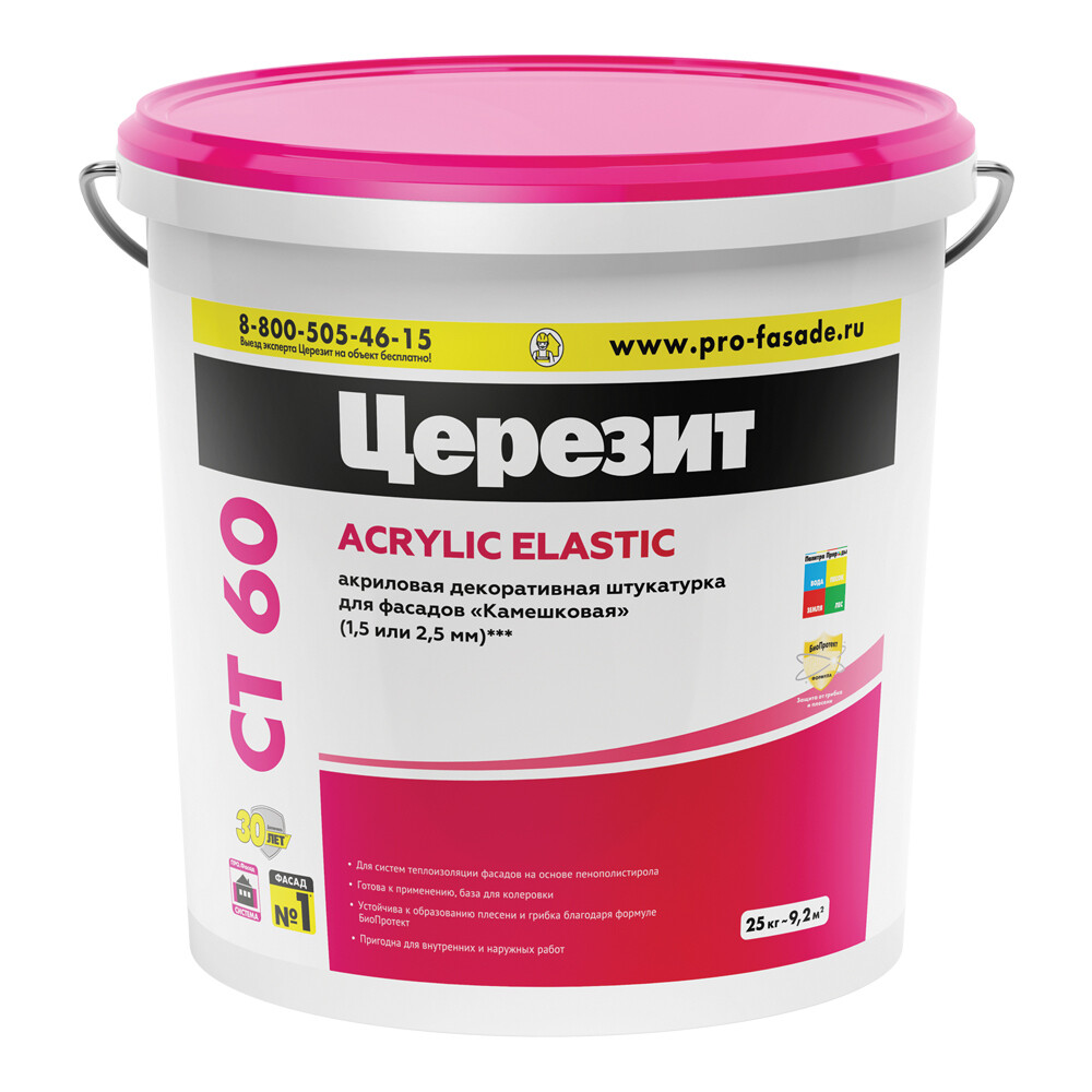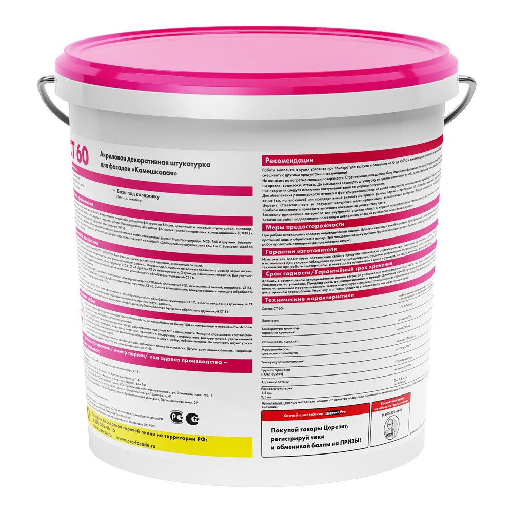 Главная / Каталог / Финишная отделка / Лакокрасочные материалы / Декоративная штукатурка / Штукатурка фасадная Церезит CT 60 камешковая акриловая 1,5 мм 25 кг