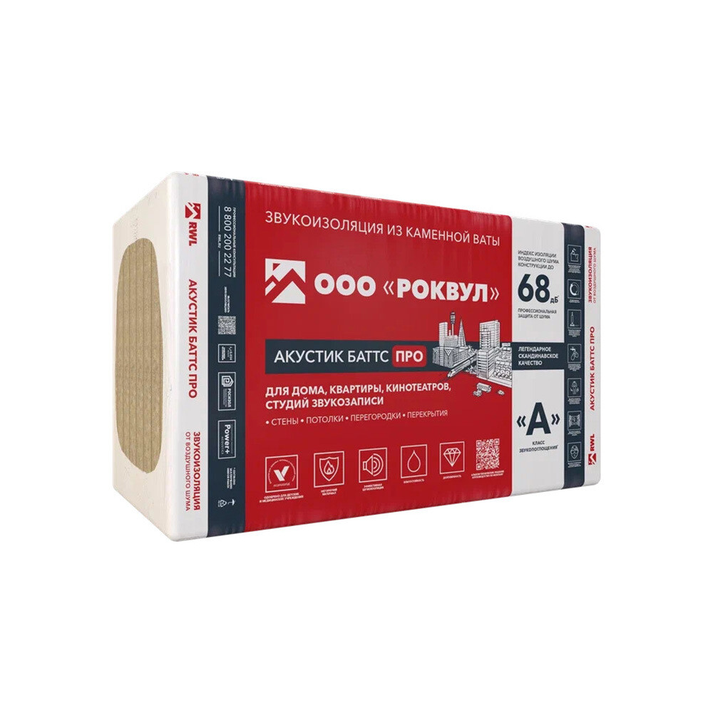 АКУСТИК БАТТС ПРО — звукопоглощающие плиты, используется в качестве среднего слоя в конструкциях каркасно-обшивных перегородок и облицовок, межэтажных перекрытий, а также для дополнительной звукоизоляции потолков.