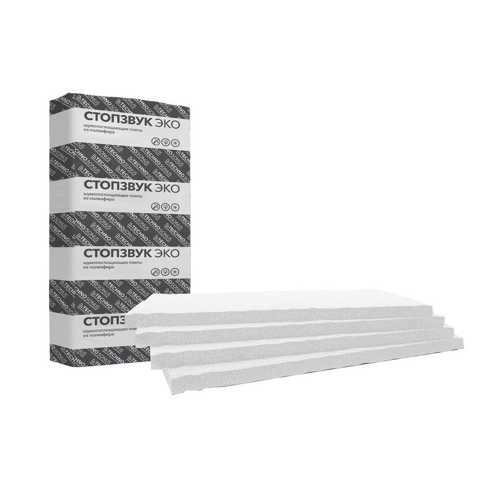 СтопЗвук ЭКО — это звукопоглощающая плита на основе полиэфирного (синтетического) волокна, скрепленного между собой термическим способом.