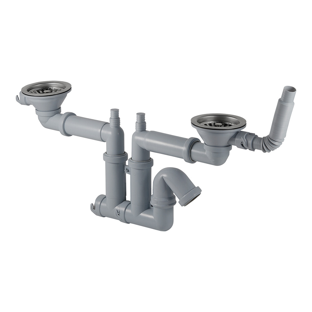 Двойной сифон F3545S имеет отвод для подключения стиральной машины, гибкий круглый и прямоугольный перелив для моек. Сифон позволяет более эффективно использовать пространство под кухонной мойкой или под умывальником в ванной комнате.