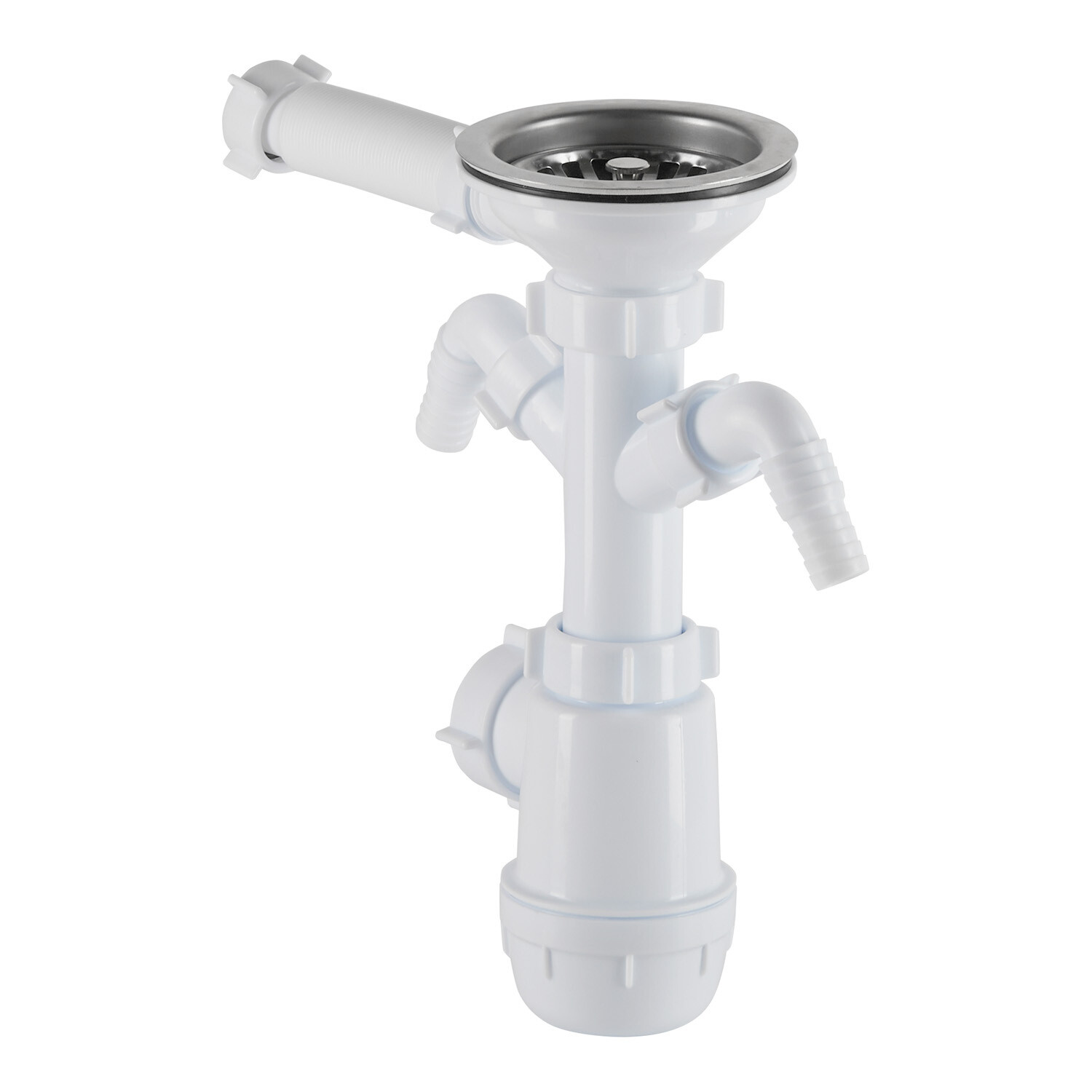 Сифон A0146S имеет 2 отвода для стиральной машины, 2 перелива, гибкий выпуск с нержавеющей решеткой. Корпус перелива оборудован универсальной прокладкой для круглых и прямоугольных моек, нужная сторона прокладки достигается путем переворота.