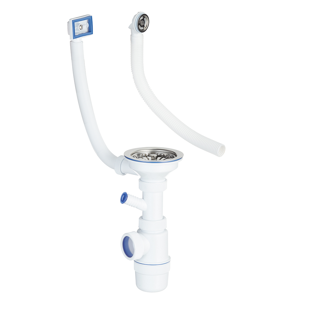Комплектация: Сифон, выпуск с металлическим штоком, фильтр пробка, отвод, перелив прямоугольный и круглый.