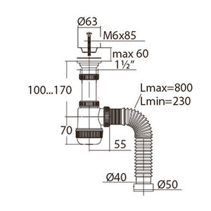 Состав (материалы): сифон, гибкое соединение – полипропилен; чашка – нержавеющая сталь; прокладки – ПВХ, ПНД.