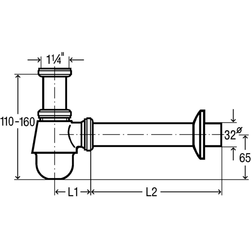 Сифон бутылочного типа удобен в монтаже и эксплуатации. Он сделан из хромированной латуни и в нем предусмотрена функция регулирования по высоте на 50 мм и глубине, что дает возможность идеально вмонтировать его в имеющееся пространство.