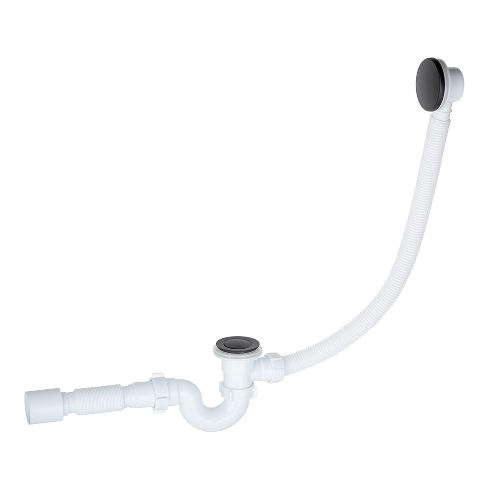 Сифон для ванны АНИ пласт 1 1/2х40 мм проточный слив d50 мм автомат с выпуском клик-клак с соединением 40/50 мм черный (EC155BL)