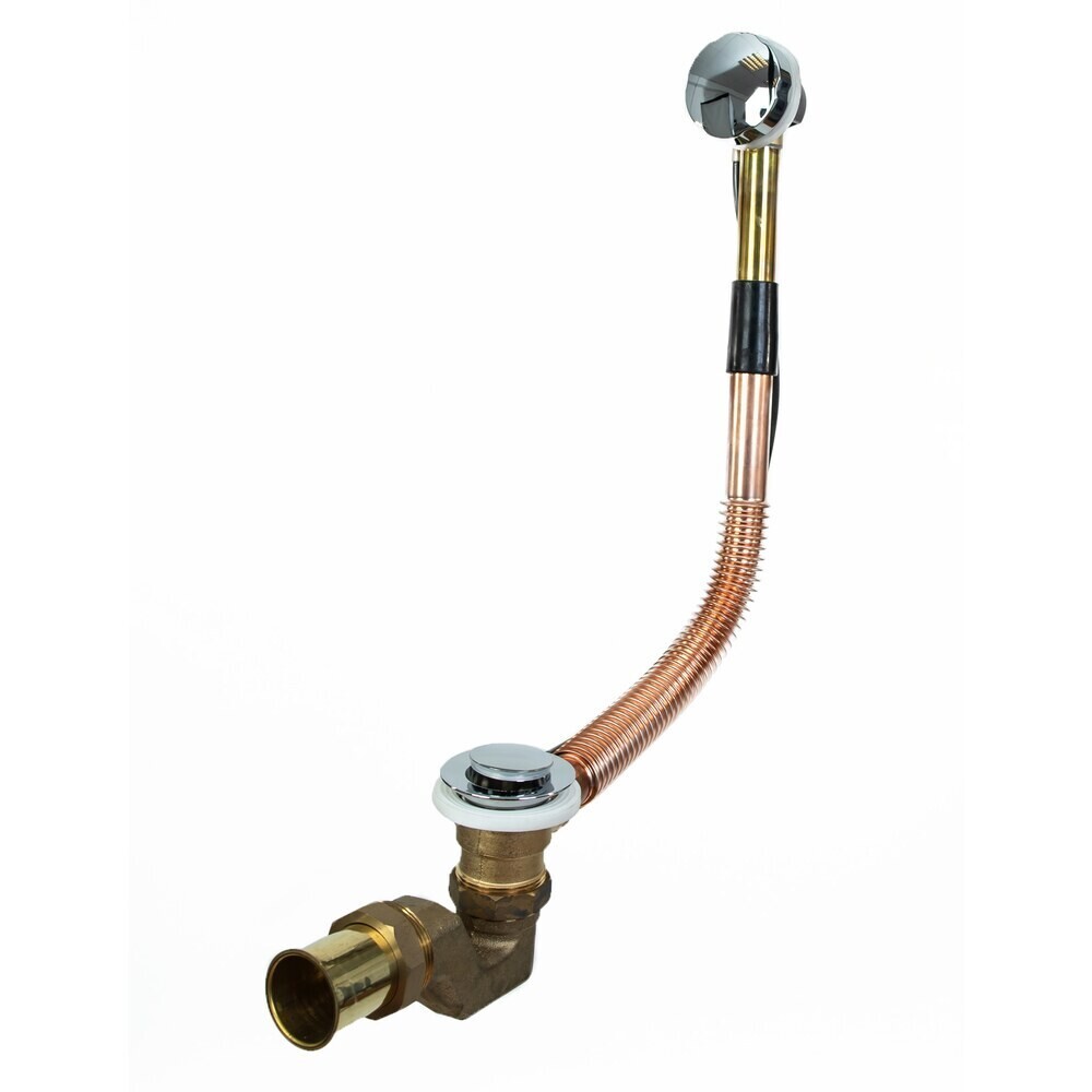 Слив-перелив для ванной полуавтомат медно-латунный — надежное решение для обвязки ванны, сочетающее прочность и функциональность. Конструкция выполнена из металла с применением латунных и медных элементов, что обеспечивает долговечность и устойчивость к коррозии даже при длительной эксплуатации в условиях повышенной влажности. Этот сантехнический аксессуар имеет встроенный гидрозатвор 50 мм, который предотвращает проникновение неприятных запахов из канализации. Высоконадежный тросовый привод со стальным тросиком отличается плавностью работы и системой защиты от повреждений, гарантируя комфортное управление сливом воды. Компактная высота сифона всего 10 см под ванной позволяет устанавливать его даже в ограниченном пространстве.