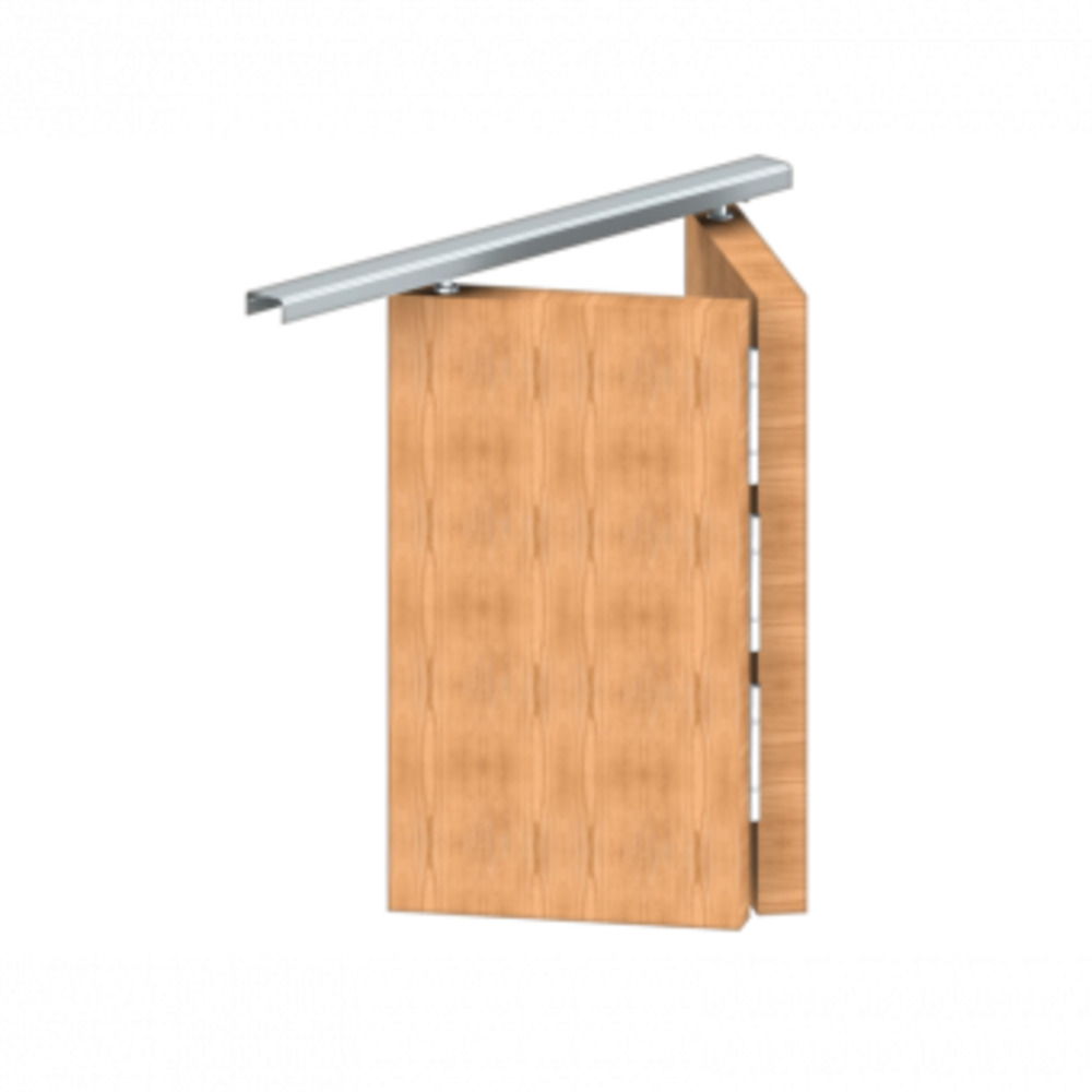 Данную систему можно использовать для монтажа складной двери с шириной секции 450 мм и весом до 14 кг. Отсутствие нижней направляющей не портит эстетичный вид двери и всего помещения в целом.