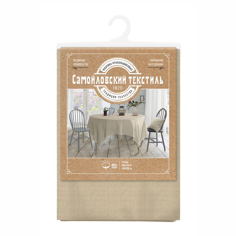 Скатерть Самойловский текстиль 144х144 см рогожка Текстура бежевая