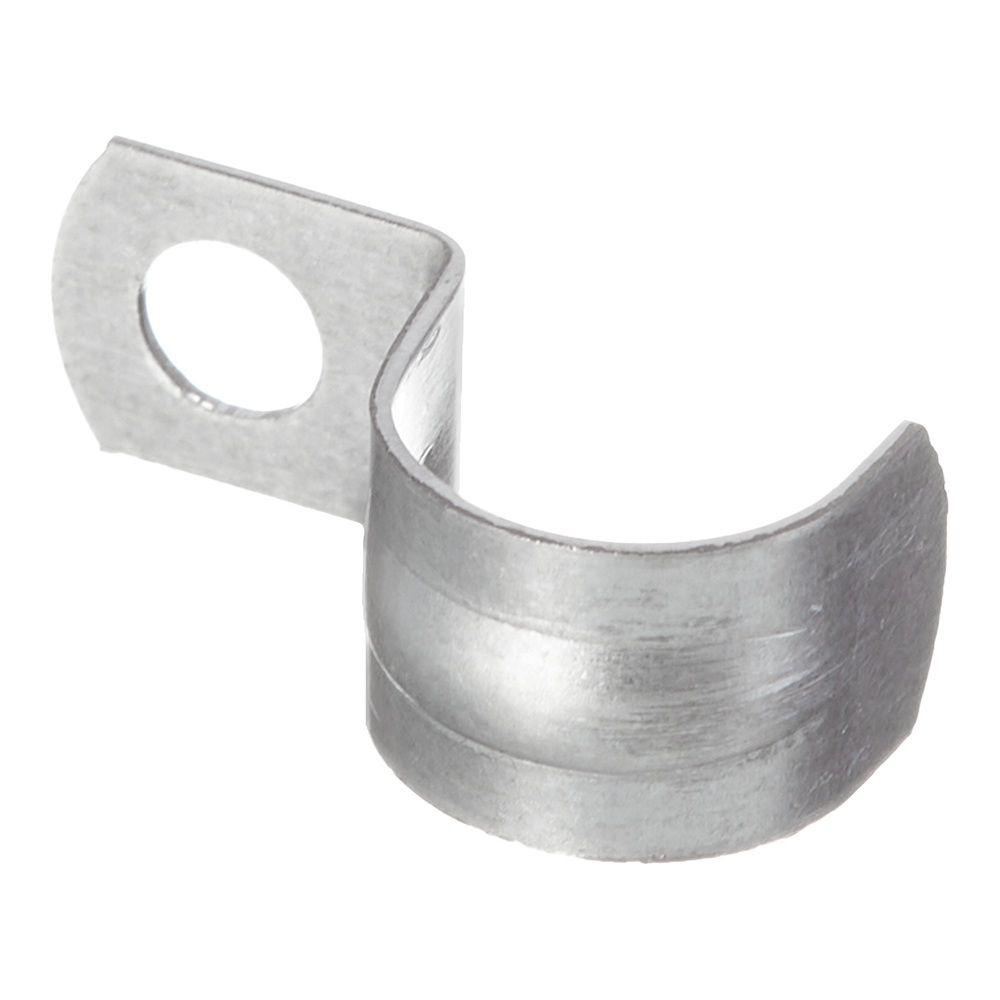 Скоба крепёжная однолапковая 14 мм, устойчивая к УФ-излучению, для прокладки металлорукавов, а также стальных и полимерных труб. Ребро жесткости, проходящее по арочному изгибу скобы существенно увеличивает допустимые нагрузки.